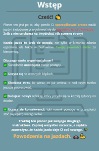 Twój Planer to coś więcej niż zeszyt – to drugi instruktor, który prowadzi Cię przez cały proces nauki jazdy.